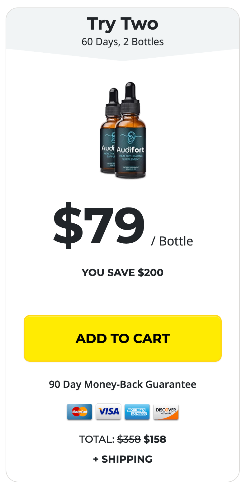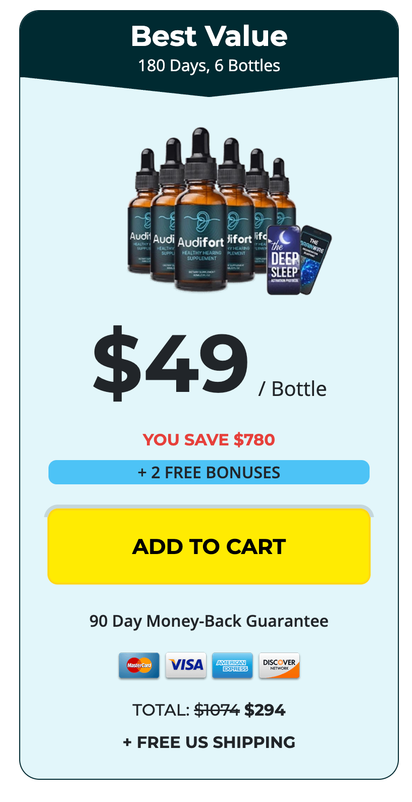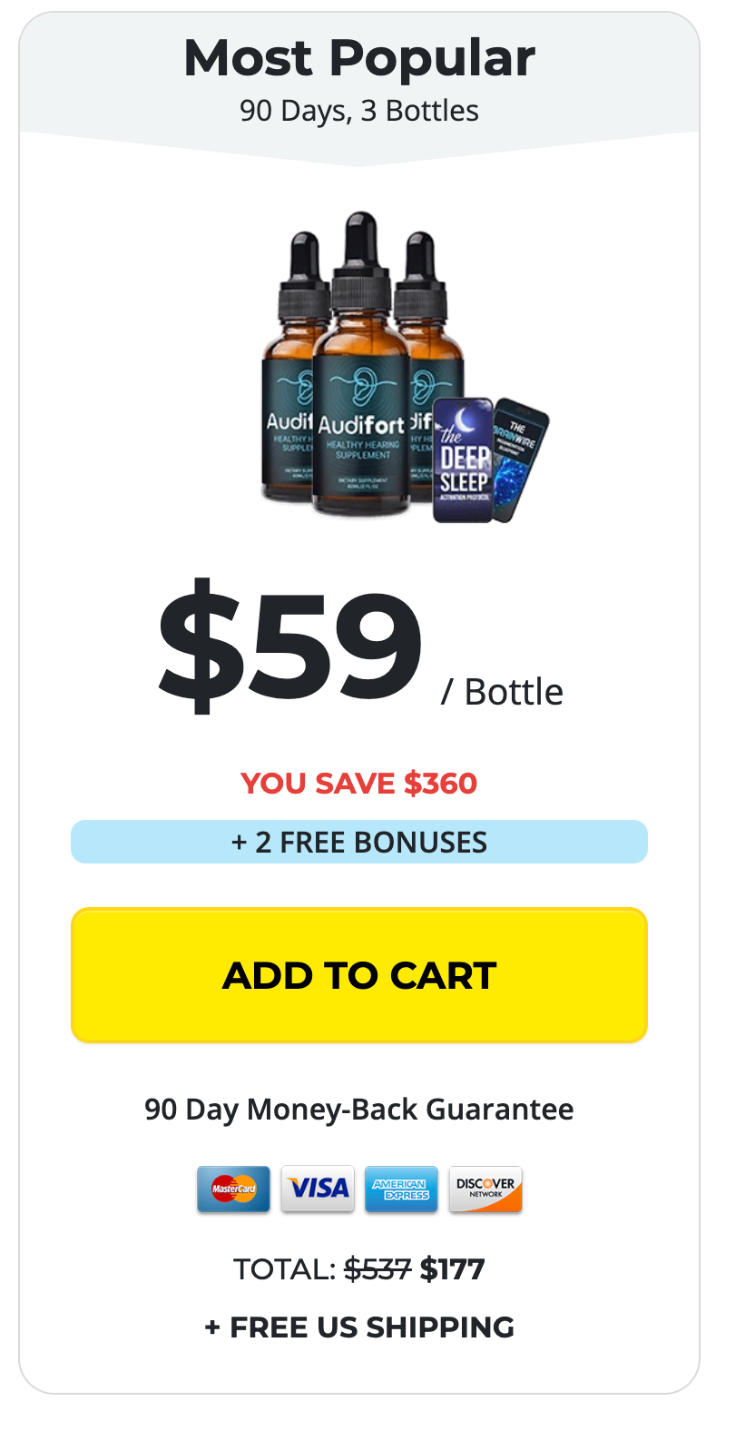 To purchase Audifort you are only asked for a one time payment right on this page. There are no other future payments needed to benefit from this product. This website is highly secure. We use industry-leading technology (such as SSLs) to keep your information safe and private.